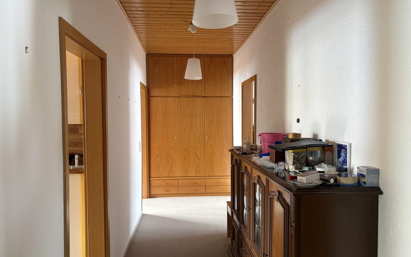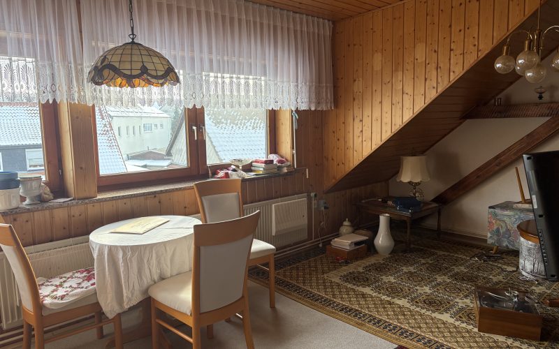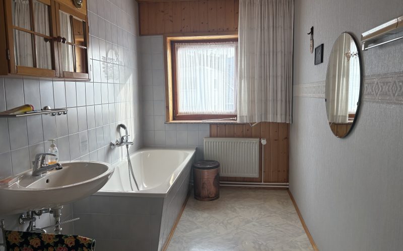 Das zweite Obergeschoss wurde bis zuletzt von der Eigentümerfamilie bewohnt. Hier wurden unter anderem Echtholzfenster im Jahr 2022 verbaut und praktische Einbauschränke integriert. Charakteristisch für diese Einheit sind die großen Gauben, die den Räumen eine besondere Atmosphäre verleihen, Licht hineinlassen und zugleich den individuellen Wohncharakter unterstreichen. Das Badezimmer wurde in den 1990er Jahren gebaut und entspricht einem funktionalen, einfachen Standard.