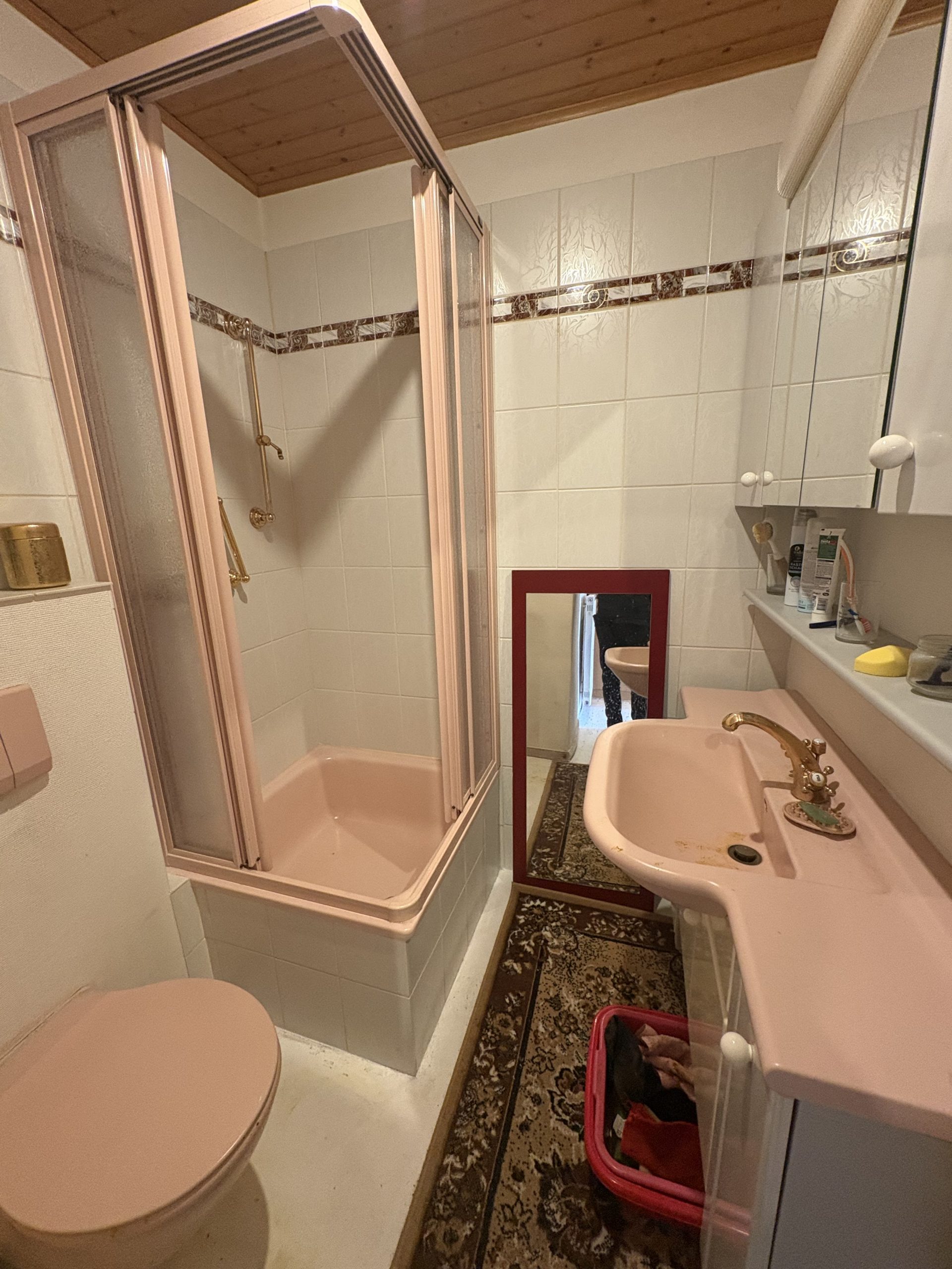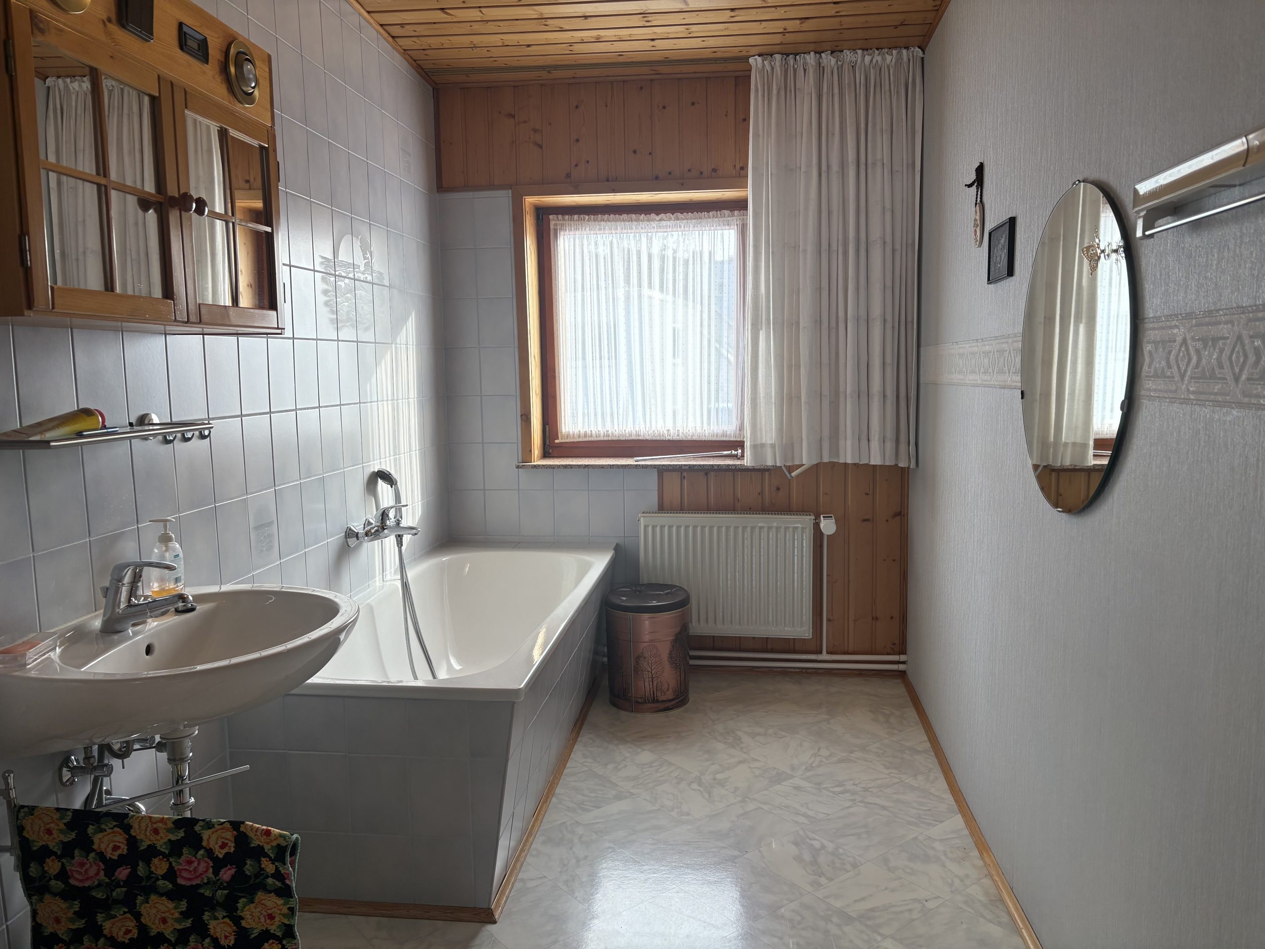 Das zweite Obergeschoss wurde bis zuletzt von der Eigentümerfamilie bewohnt. Hier wurden unter anderem Echtholzfenster im Jahr 2022 verbaut und praktische Einbauschränke integriert. Charakteristisch für diese Einheit sind die großen Gauben, die den Räumen eine besondere Atmosphäre verleihen, Licht hineinlassen und zugleich den individuellen Wohncharakter unterstreichen. Das Badezimmer wurde in den 1990er Jahren gebaut und entspricht einem funktionalen, einfachen Standard.