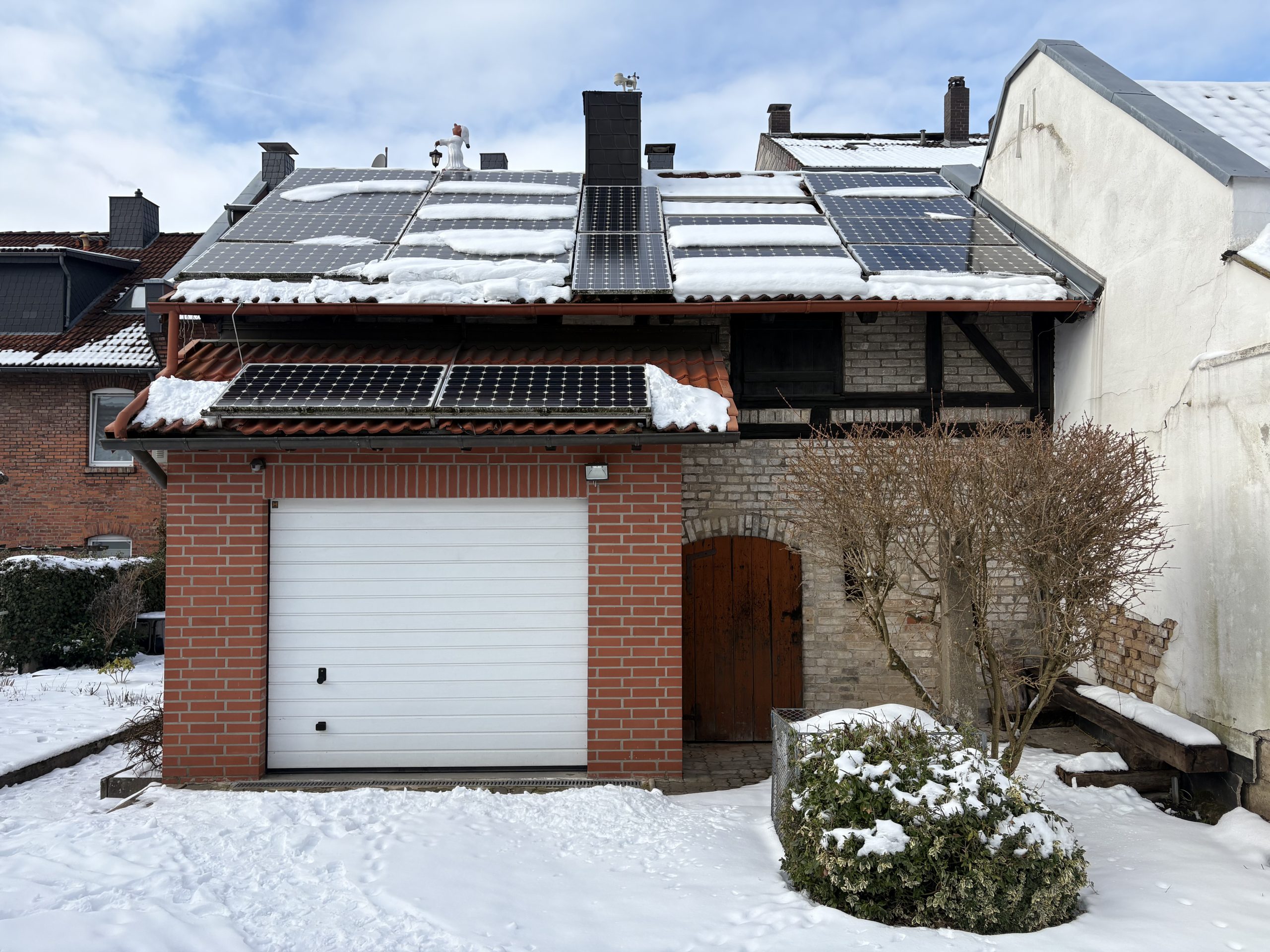 Das Gebäude ist unterkellert und verfügt über ein Satteldach mit Tonziegeln und Gaube. Außenflächen mit gepflegtem Pflaster, eine Garage und ein Schuppen mit PV-Anlage sowie ein Gartenbereich erweitern das Nutzungsspektrum.