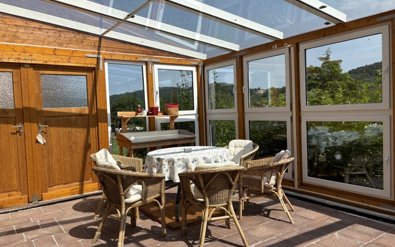 Das Haus selbst bietet ca. 230 m² Wohnfläche, die sich lichtdurchflutet und offen präsentieren. Ein Highlight ist der großzügige, etwa 60 m² große Wintergarten mit Fensterfronten aus dem Jahr 1999 und Markise zur Beschattung – ein Ort, an dem Sie wetterunabhängig den Wechsel der Jahreszeiten miterleben. Zwei Balkone, jeweils doppelt verglast und sowohl im Erd- als auch im Obergeschoss gelegen, schenken Ihnen nicht nur herrliche Ausblicke, sondern verstärken zugleich die energetische Isolierung.