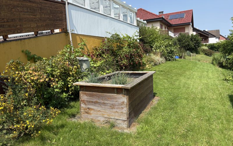 Das rund 918 m² große, arrondierte Grundstück empfängt Sie mit einer angenehmen Mischung aus Weitläufigkeit und Pflegeleichtigkeit. Ein prächtiger Walnussbaum, Beerensträucher und sogar Feigenbäume verleihen dem Garten einen besonderen Charme – mediterran anmutend und zugleich praktisch in der Bewirtschaftung. Unterstützt wird die Gartenpflege durch eine rund 10.000 Liter fassende Zisterne für Brauchwasser, die nicht nur die Umwelt schont, sondern auch die Betriebskosten reduziert.