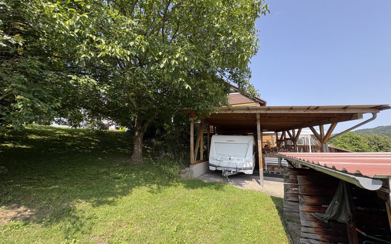 Auch für Ihre Fahrzeuge ist bestens gesorgt: Eine Doppelgarage mit dahinterliegendem Werkstattraum, ein Carport so groß, dass ein Wohnmobil darunter Platz findet sowie ein zusätzlicher PKW-Stellplatz stehen zur Verfügung. Ein Holzschuppen ergänzt das Angebot um wertvollen Stauraum. Zudem befindet sich ein großes Büro im Kellergeschoss.