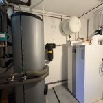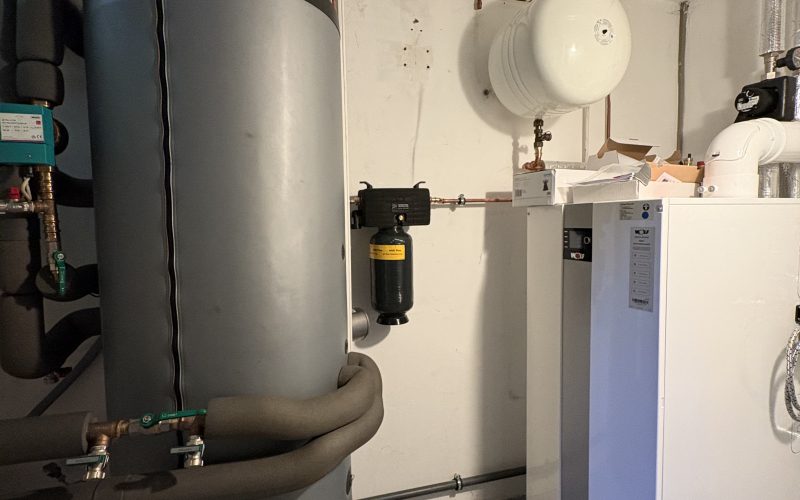 Ein moderner Ölbrennwertkessel der Firma Wolf aus 2024 mit 300-Liter-Warmwasserspeicher, doppelwandigen 1.000-Liter-Tanks (drei Stück) mit Stahlauffangwanne, sorgt für effiziente, unabhängige Wärmeversorgung.