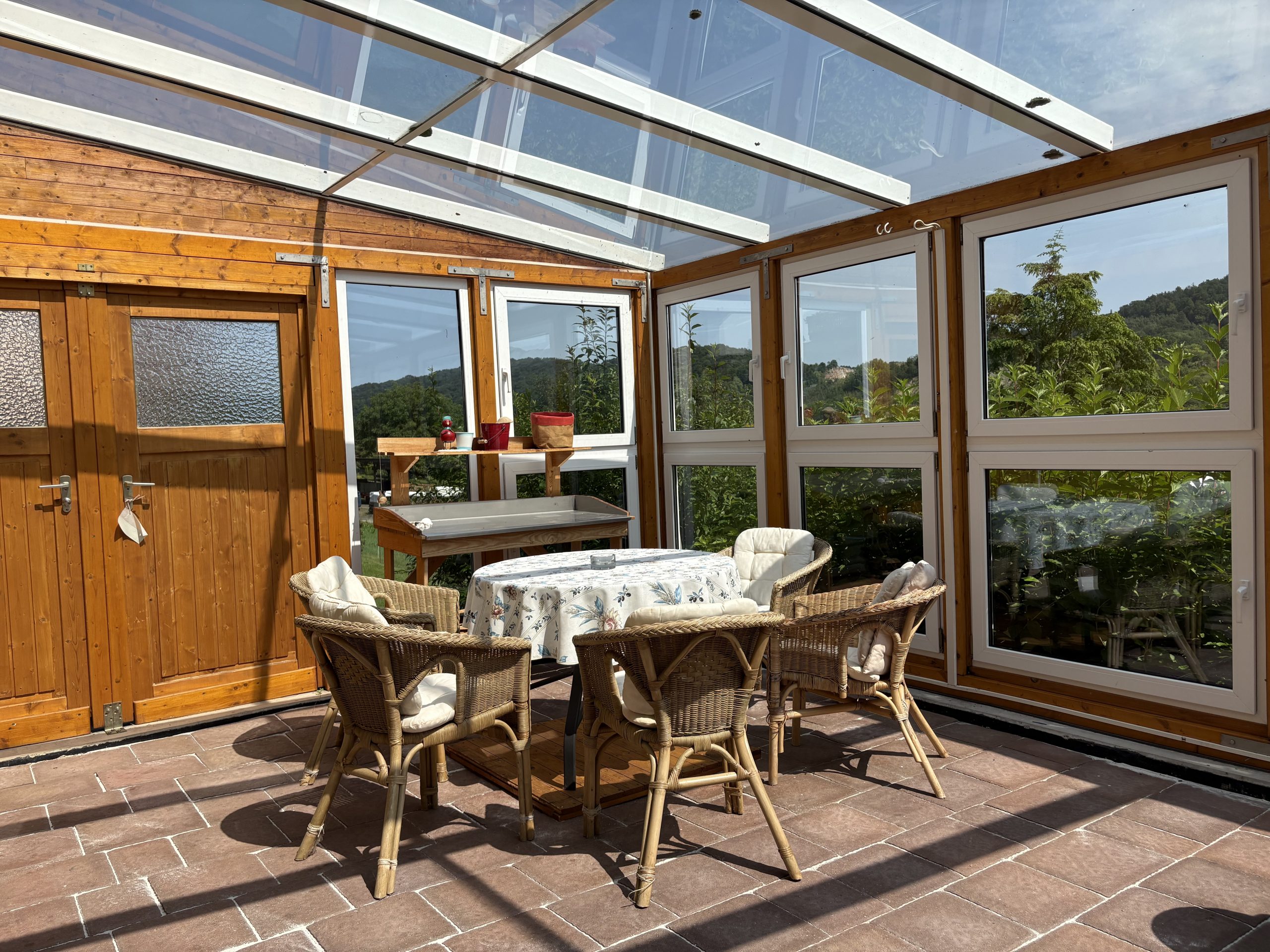Das Haus selbst bietet ca. 230 m² Wohnfläche, die sich lichtdurchflutet und offen präsentieren. Ein Highlight ist der großzügige, etwa 60 m² große Wintergarten mit Fensterfronten aus dem Jahr 1999 und Markise zur Beschattung – ein Ort, an dem Sie wetterunabhängig den Wechsel der Jahreszeiten miterleben. Zwei Balkone, jeweils doppelt verglast und sowohl im Erd- als auch im Obergeschoss gelegen, schenken Ihnen nicht nur herrliche Ausblicke, sondern verstärken zugleich die energetische Isolierung.