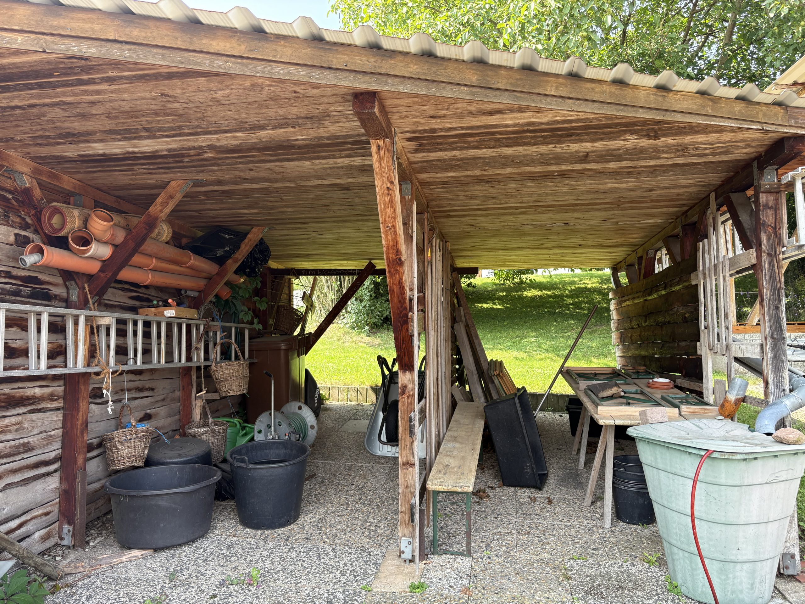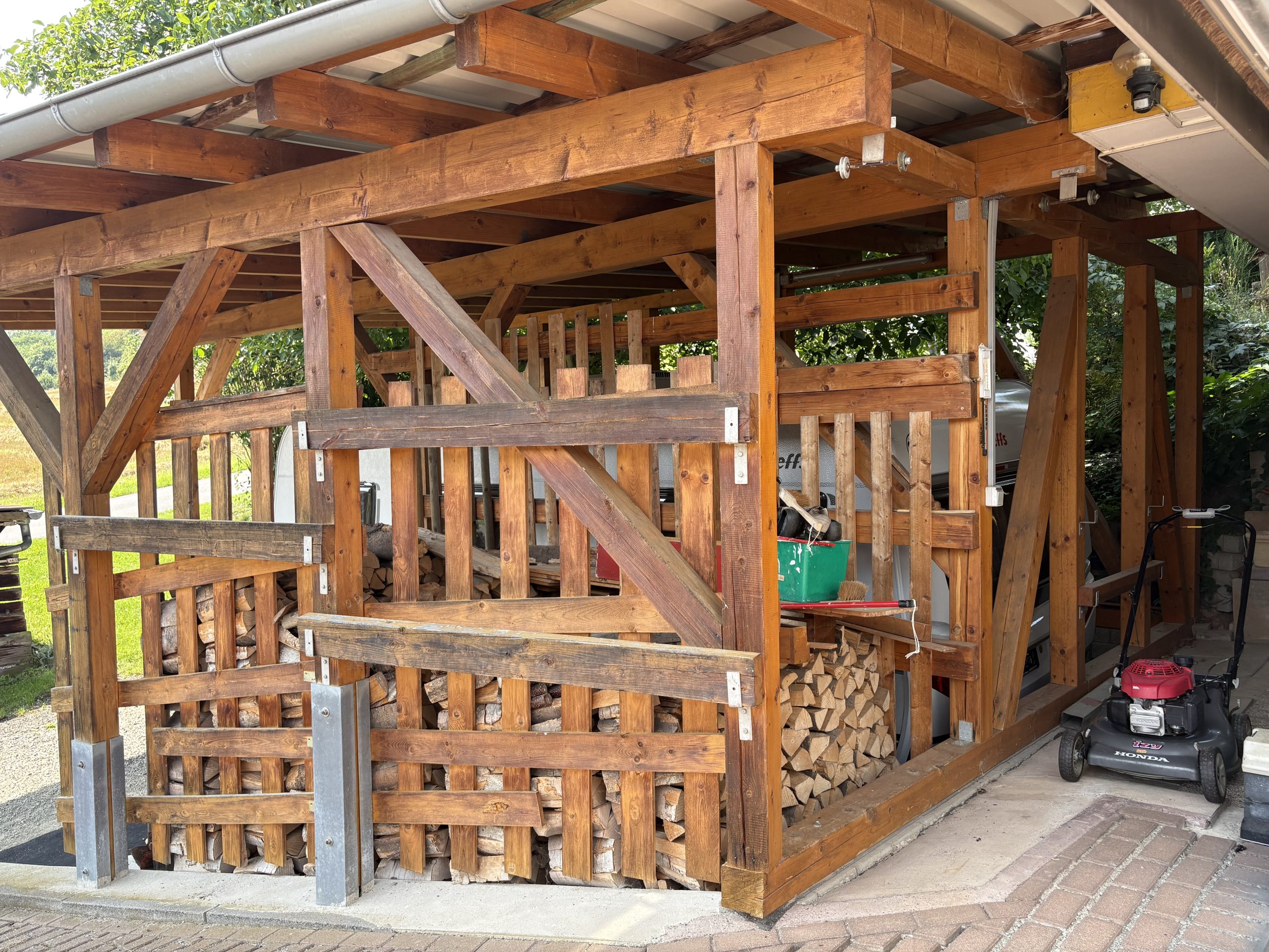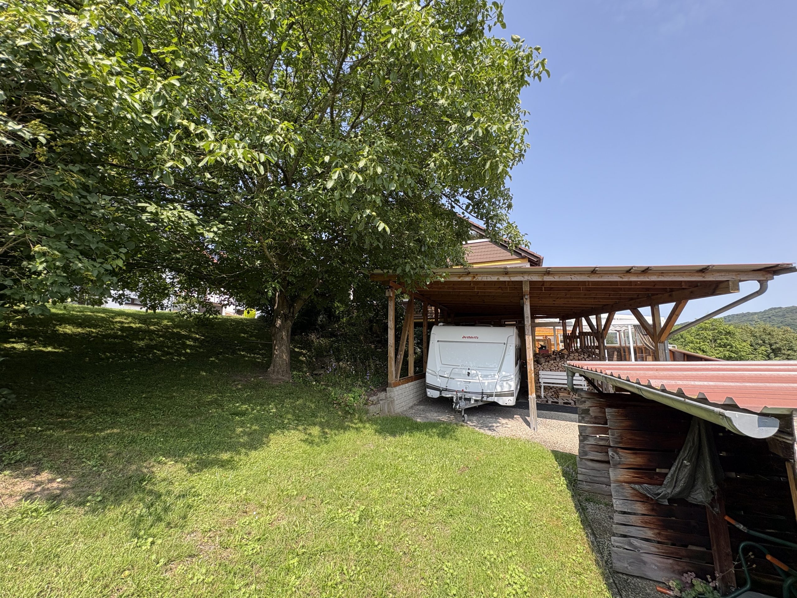 Auch für Ihre Fahrzeuge ist bestens gesorgt: Eine Doppelgarage mit dahinterliegendem Werkstattraum, ein Carport so groß, dass ein Wohnmobil darunter Platz findet sowie ein zusätzlicher PKW-Stellplatz stehen zur Verfügung. Ein Holzschuppen ergänzt das Angebot um wertvollen Stauraum. Zudem befindet sich ein großes Büro im Kellergeschoss.