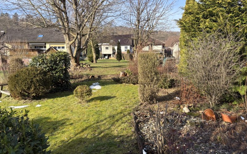 Das Haus befindet sich in einer ruhigen Wohngegend in angenehmer Höhenlage und überzeugt insbesondere durch sein weitläufiges, wunderschön angelegtes Grundstück mit Wiese, Büschen, Sträuchern und Baumbestand – ein echtes Paradies für Gartenliebhaber, Selbstversorger oder Familien mit Kindern.