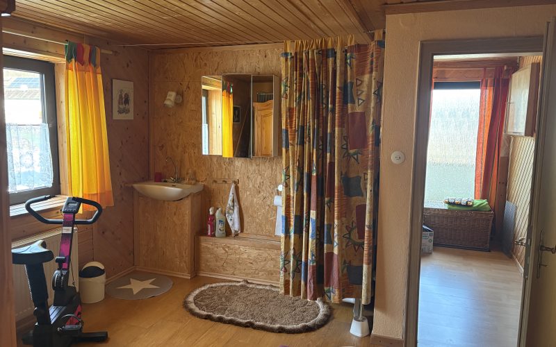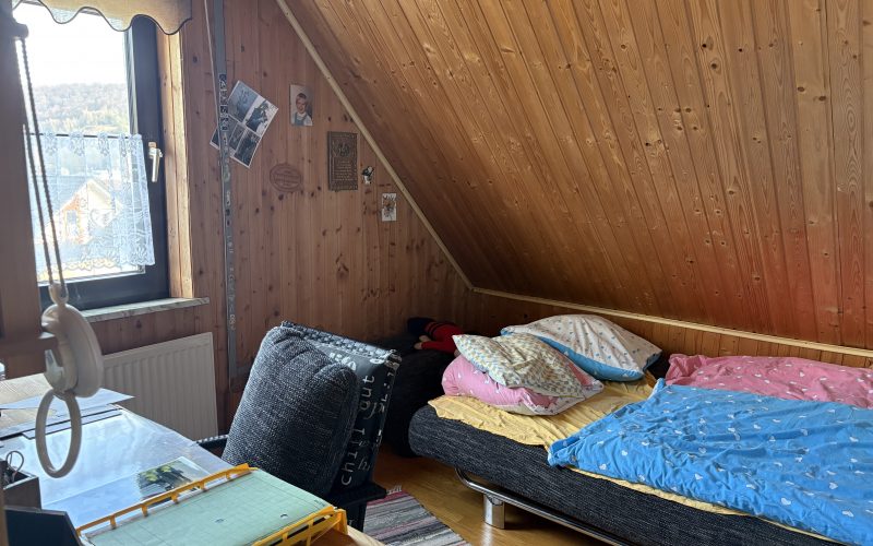Im Obergeschoss stehen vier weitere Räume zur Verfügung, die flexibel nutzbar sind. In einem der Räume befinden sich zusätzlich ein WC sowie ein Waschbecken – praktisch für den Familienalltag. Hier könnte künftig auch ein kleines Badezimmer entstehen.
