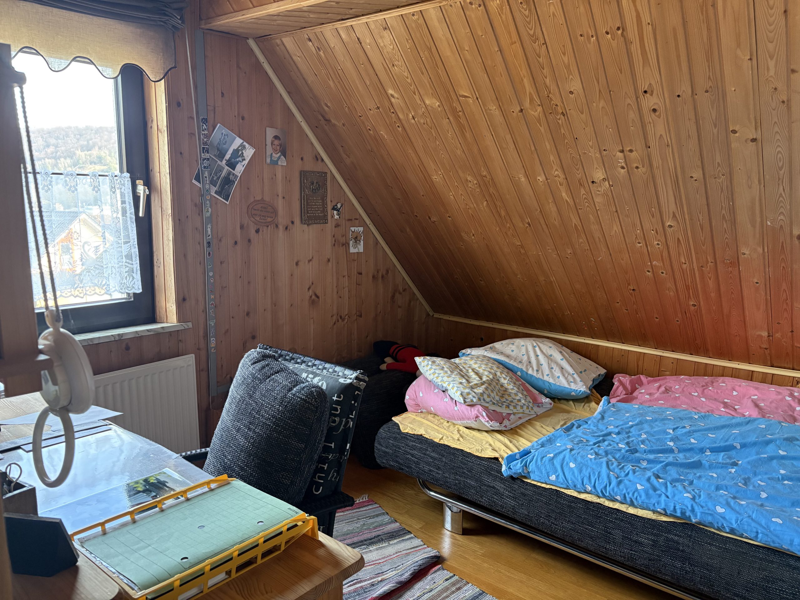 Im Obergeschoss stehen vier weitere Räume zur Verfügung, die flexibel nutzbar sind. In einem der Räume befinden sich zusätzlich ein WC sowie ein Waschbecken – praktisch für den Familienalltag. Hier könnte künftig auch ein kleines Badezimmer entstehen.