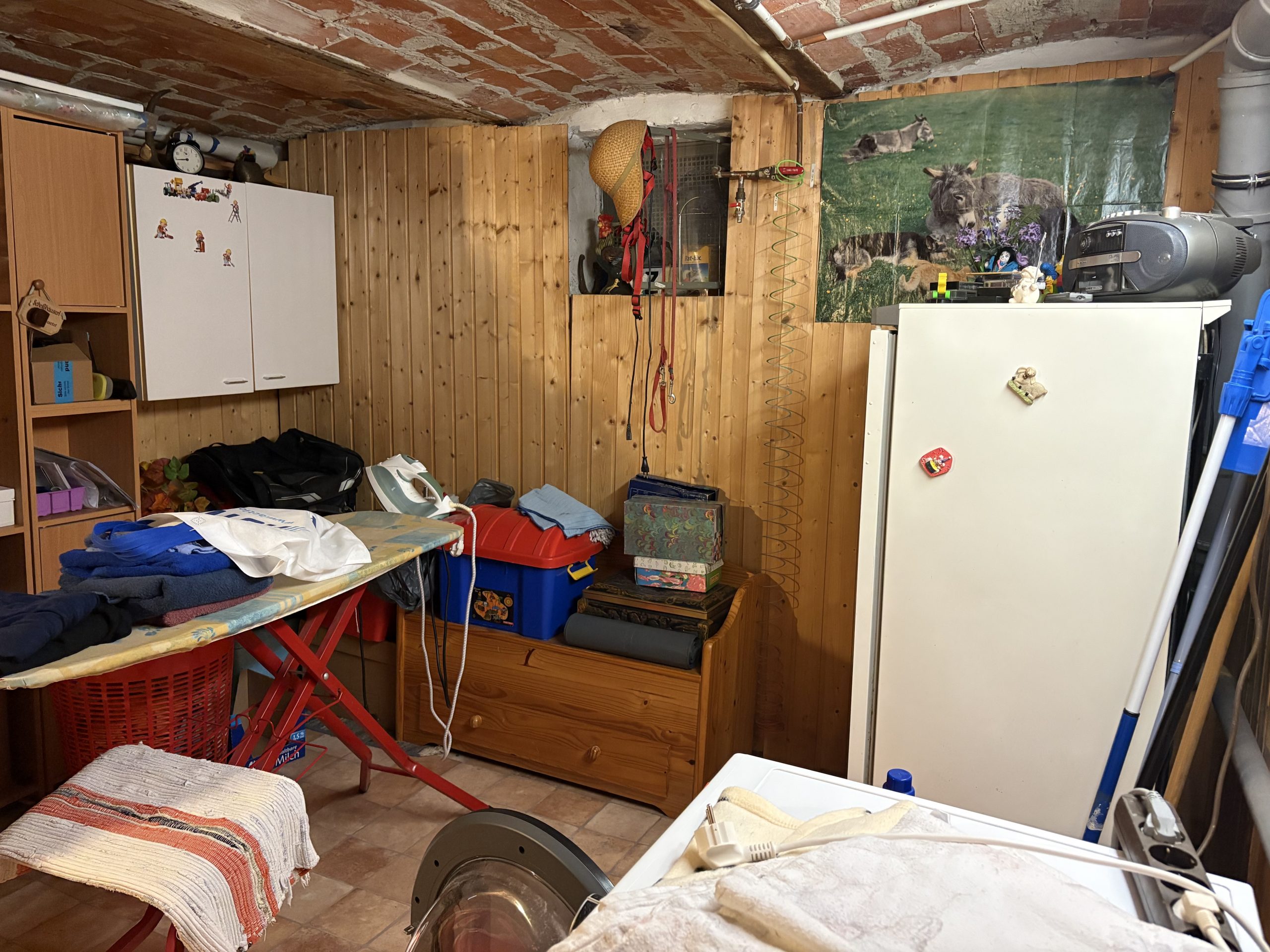 Das Kellergeschoss umfasst ein einfach ausgestattetes Badezimmer mit Badewanne und Dusche sowie drei weitere Abstellräume inkl. einem Heizungsraum.