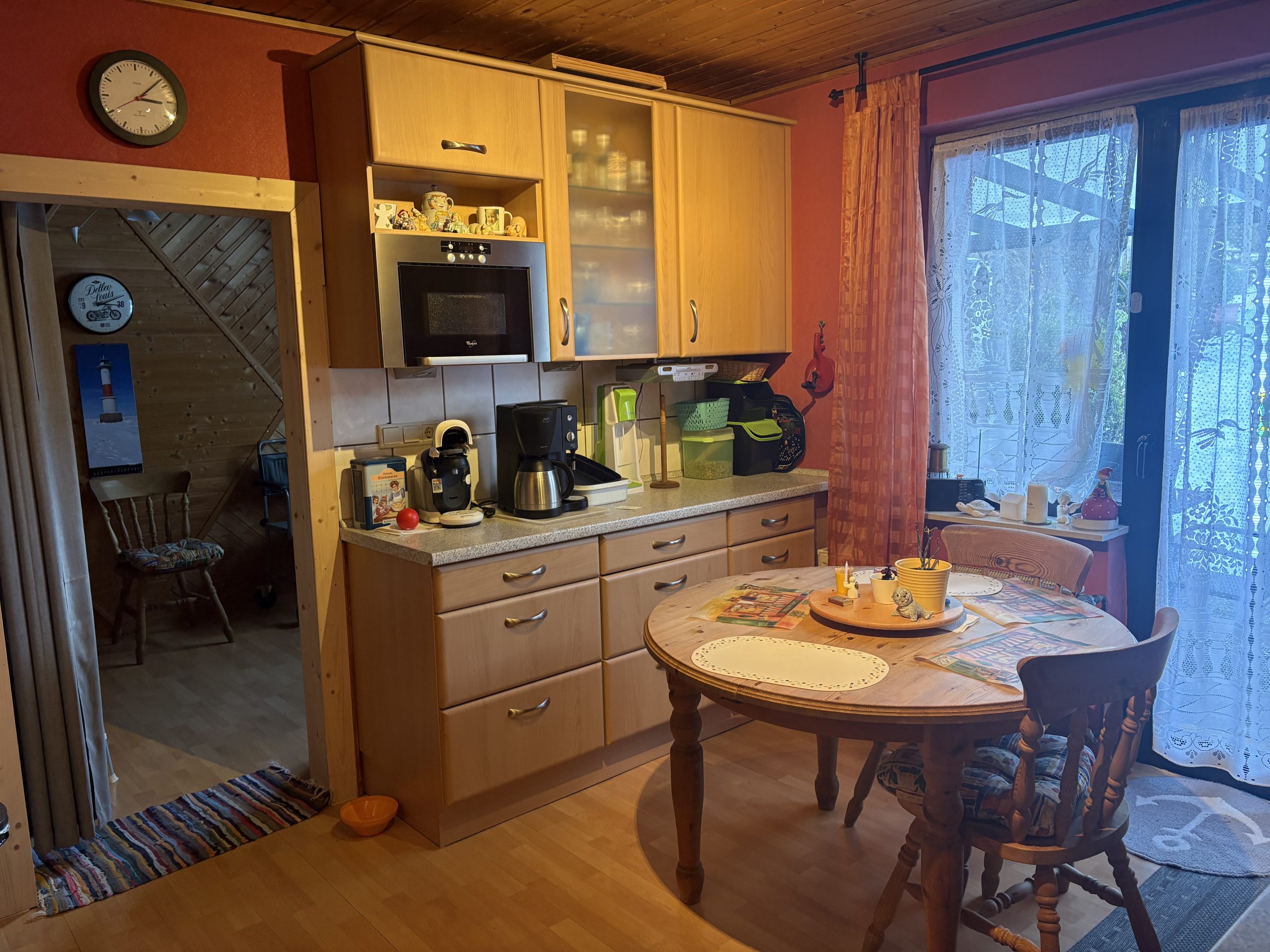 Von der Küche aus gelangen Sie direkt auf die überdachte Terrasse und in den großzügigen Garten. Hier eröffnen sich vielfältige Möglichkeiten: Gärtnern im eigenen Garten, Grillabende mit Freunden oder einfach entspannte Stunden nach einem langen Arbeitstag.