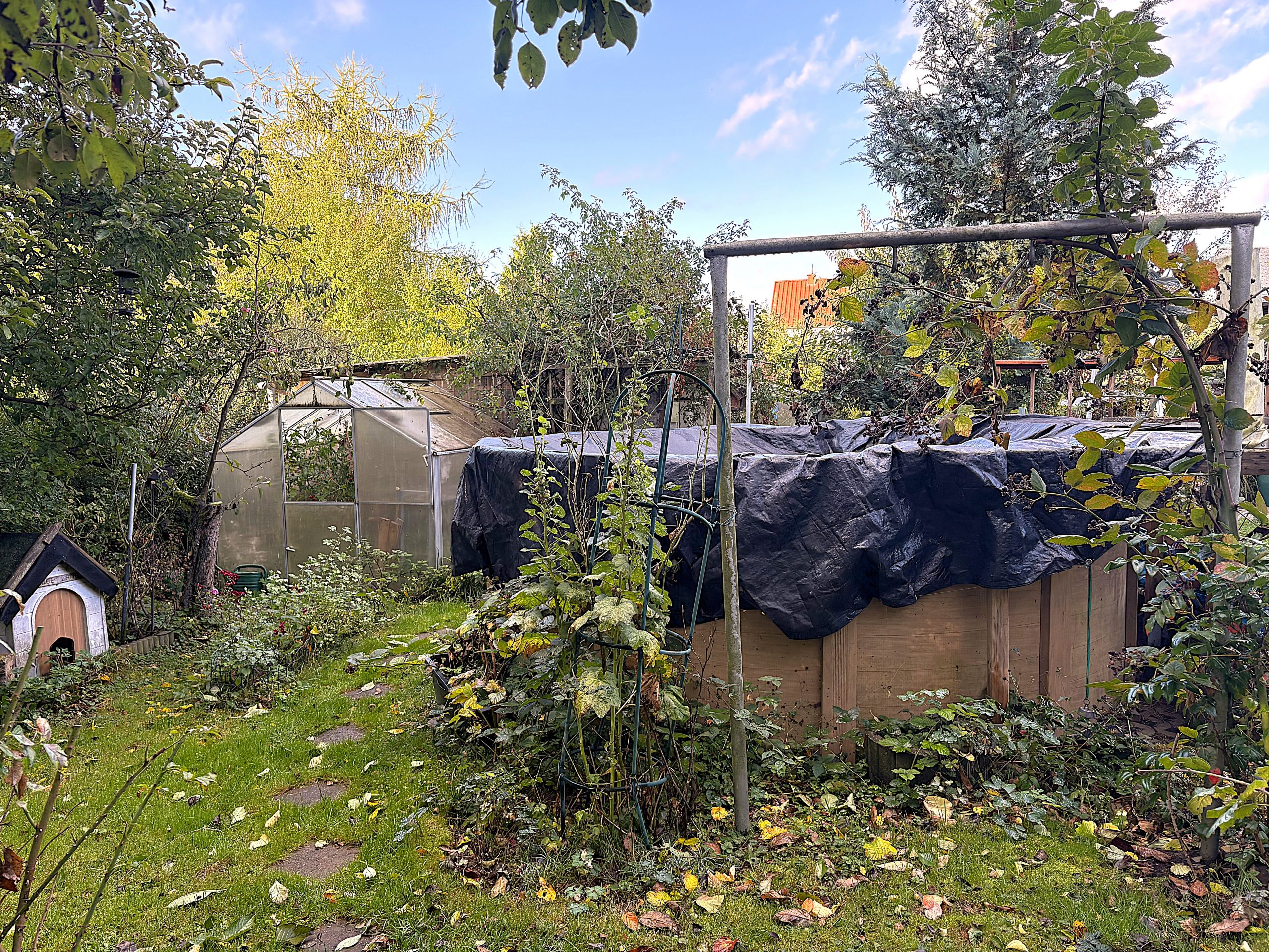 Der wunderschöne Pachtgarten mit verschiedenen Obstbäumen, Sträuchern sowie ein eingefasster Pool mit Blick ins Grüne runden das Angebot ab und laden zum Entspannen im Freien ein – ein idyllisches Plätzchen inmitten der ruhigen Gemeinde Bornhagen, die mit ihrer naturnahen Lage und ihrer Dorfstruktur ein hohes Maß an Lebensqualität bietet.