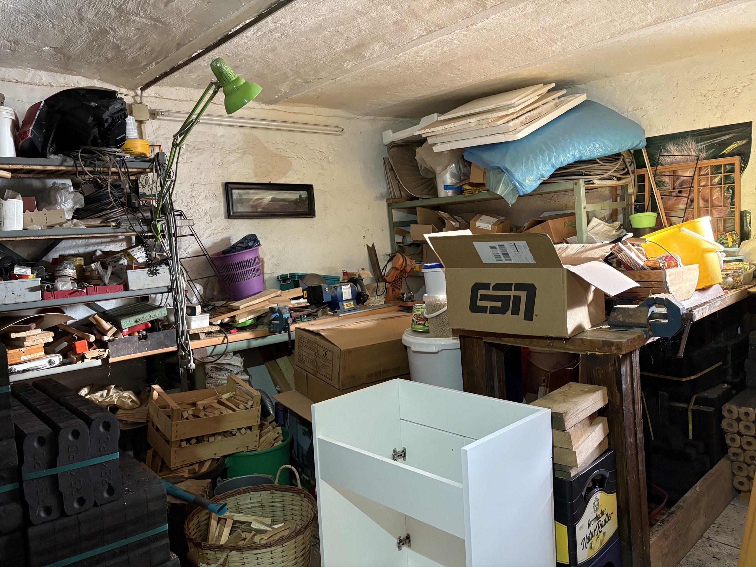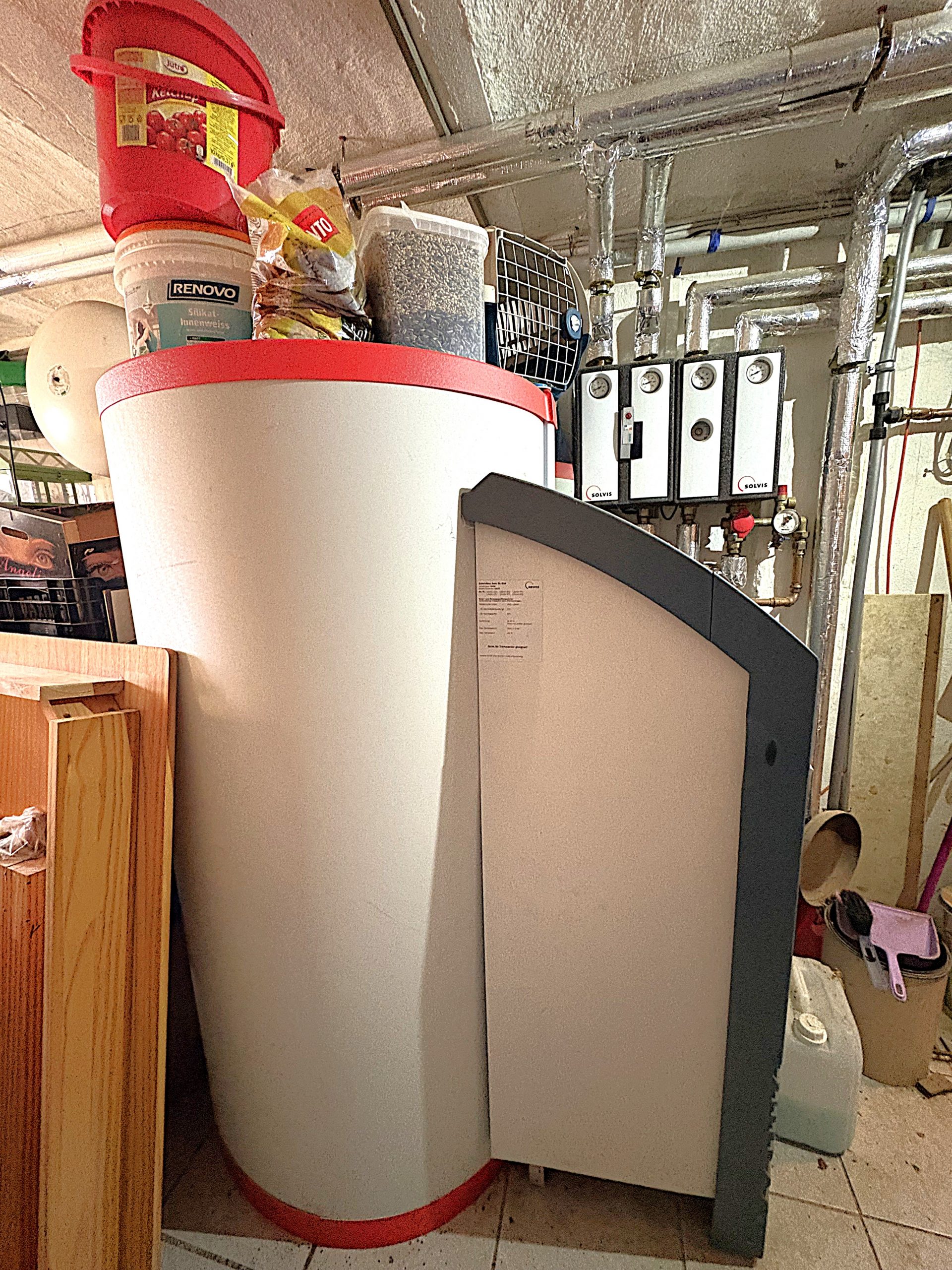 Zwei Kellerräume bieten weiteren Stauraum für Vorräte, Fahrräder und Werkzeug. Zudem befindet sich der SolvisMax Solo SL-356 Heizungspufferspeicher (Baujahr 2009) in einem der Kellerräume.