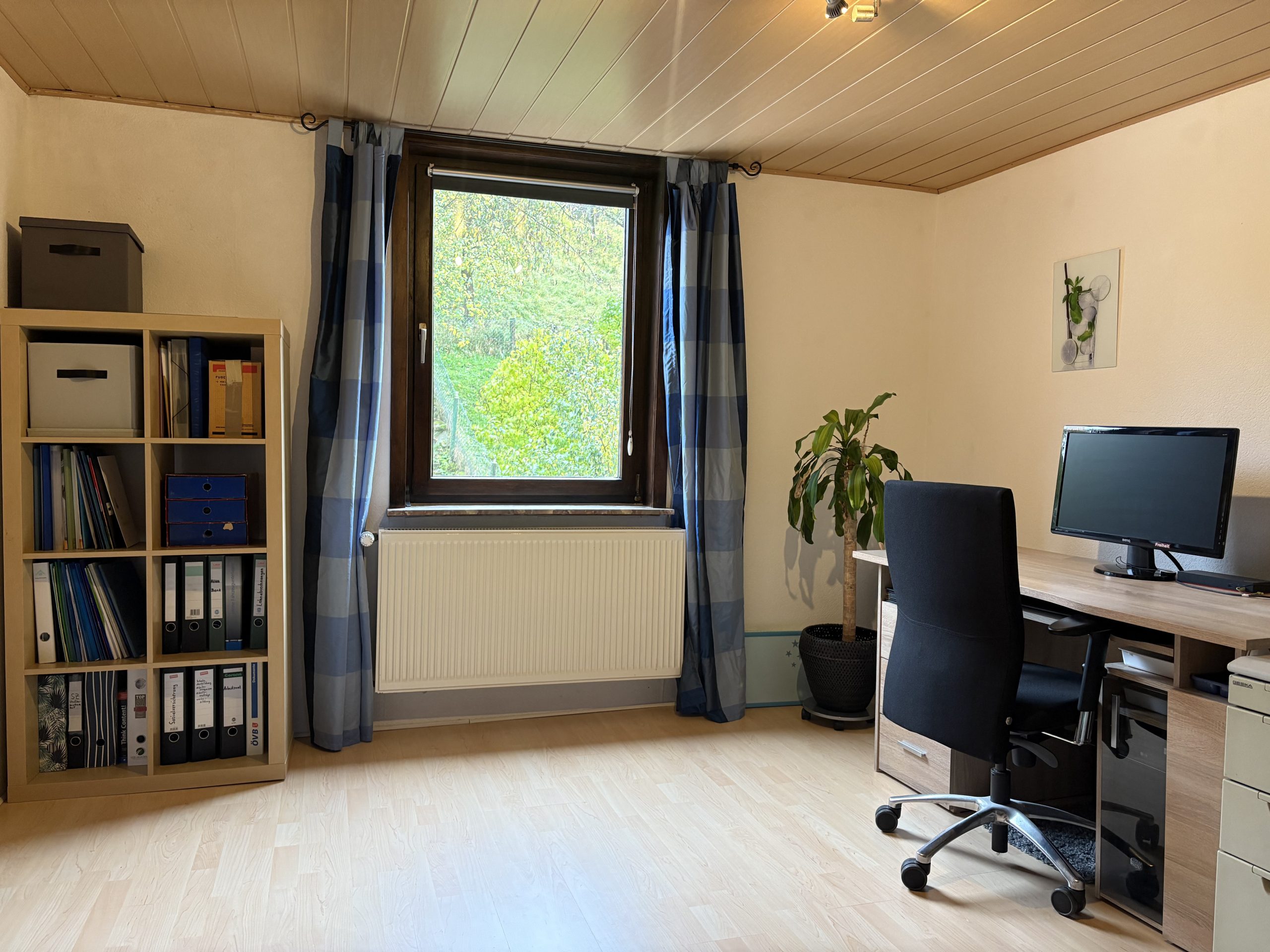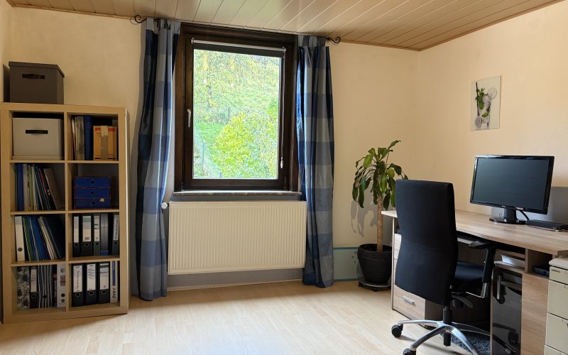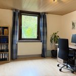 Das Obergeschoss beherbergt ein geräumiges Wohnzimmer, ein Arbeitszimmer sowie ein helles Schlafzimmer. Große Fensterflächen sorgen in allen Räumen für ein freundliches und lichtdurchflutetes Ambiente.