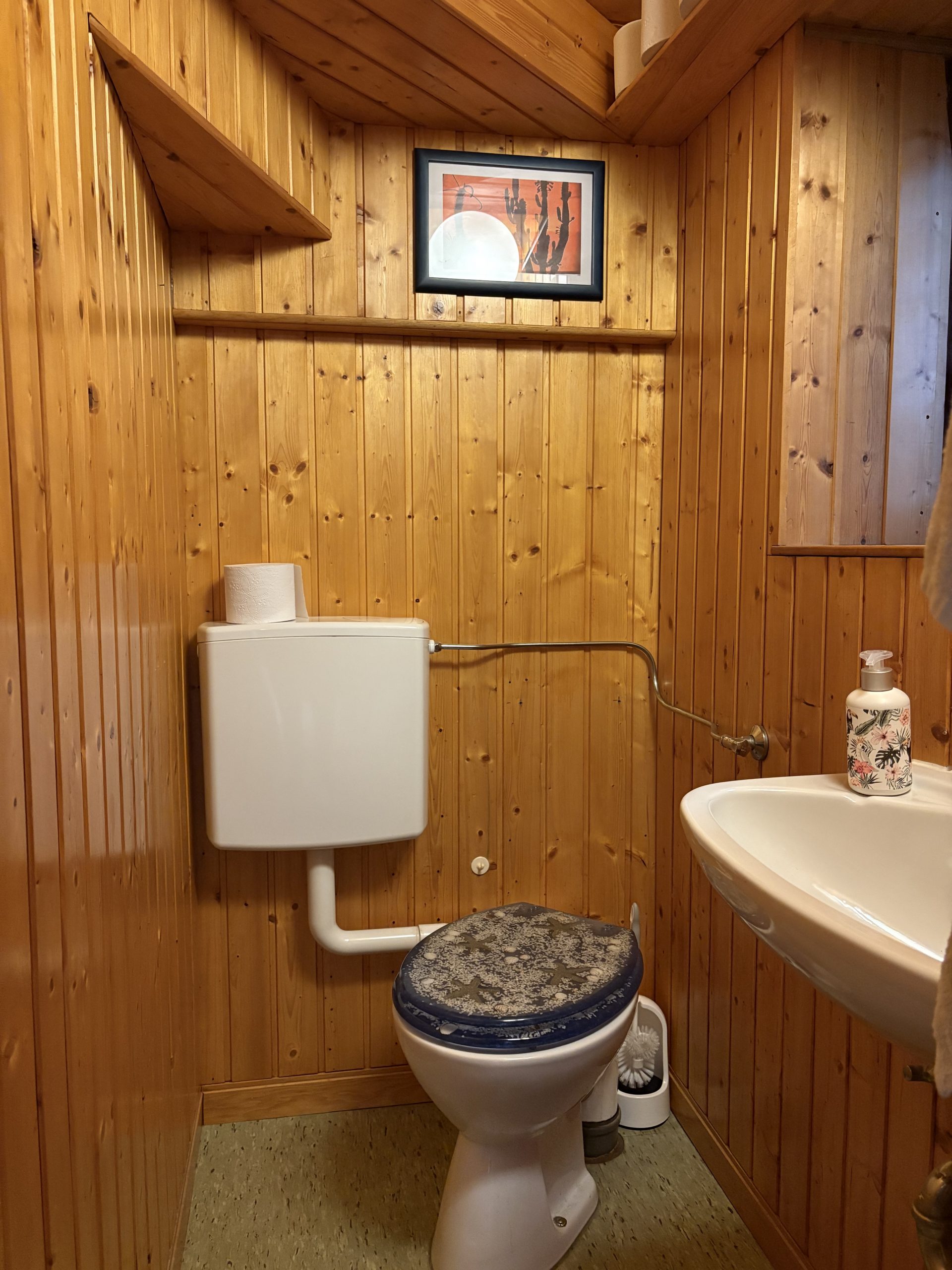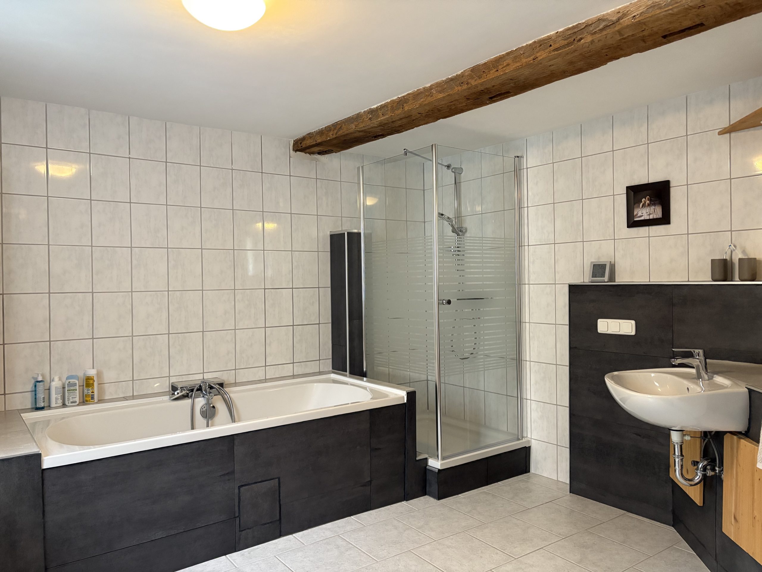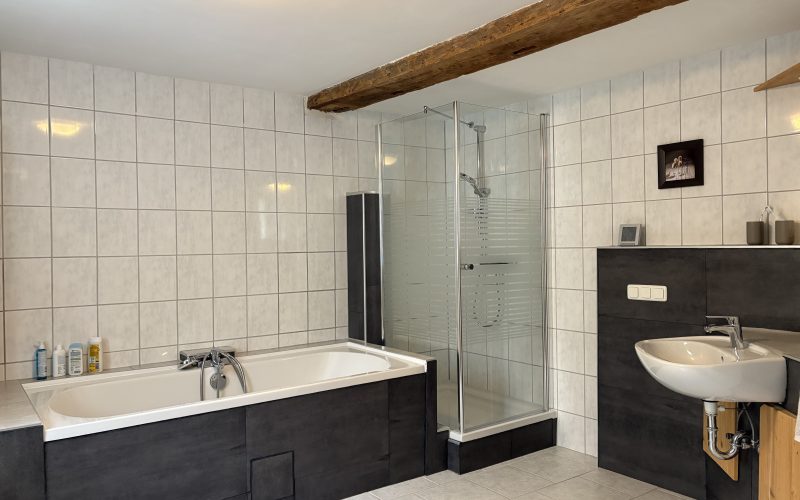 Zudem befindet sich im Erdgeschoss auch das moderne, im Jahr 2020 modernisierte Badezimmer sowie ein separates Gäste-WC. Vom Erdgeschoss aus besteht zudem der direkte Zugang zu einem angebauten Wintergarten / Hobbyraumbereich.