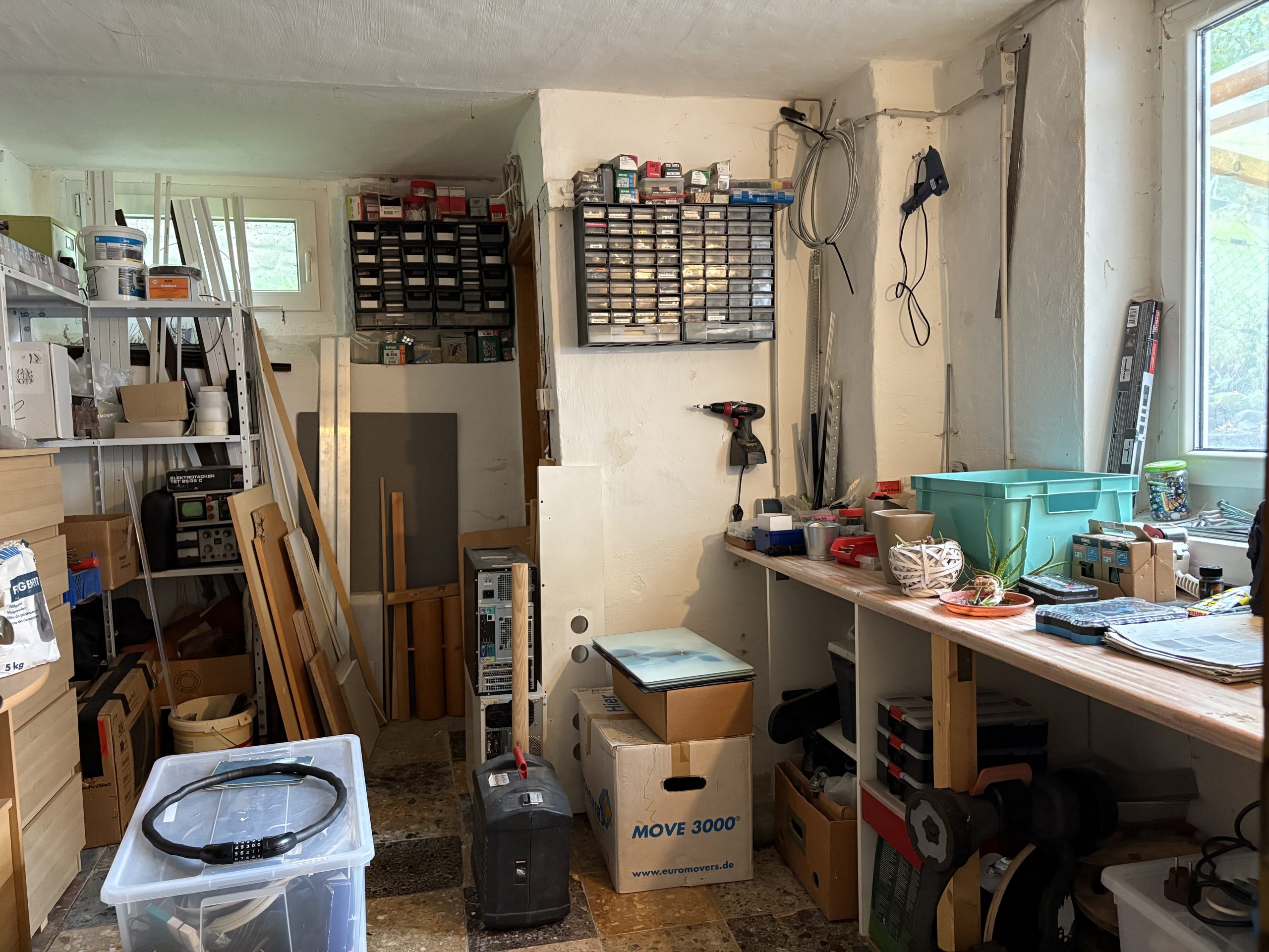 Im Kellergeschoss befinden sich der Heizungsraum mit einer Viessmann-Gaszentralheizung aus dem Jahr 1995, ein Waschraum für Waschmaschine und Trockner sowie ein praktischer Hobby- oder Werkraum, genug Platz für Vorräte, Fahrräder und Werkzeug.