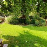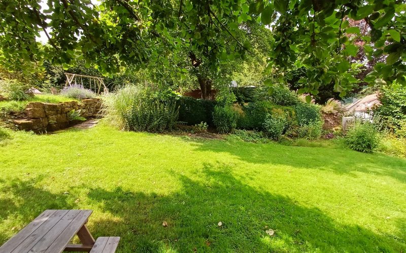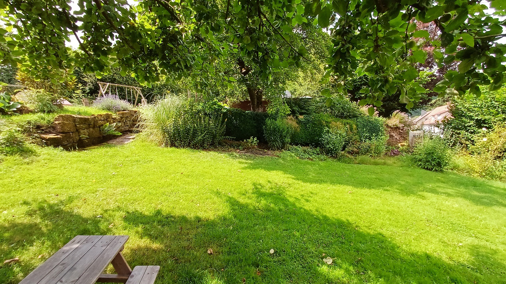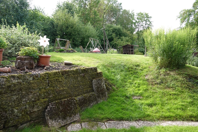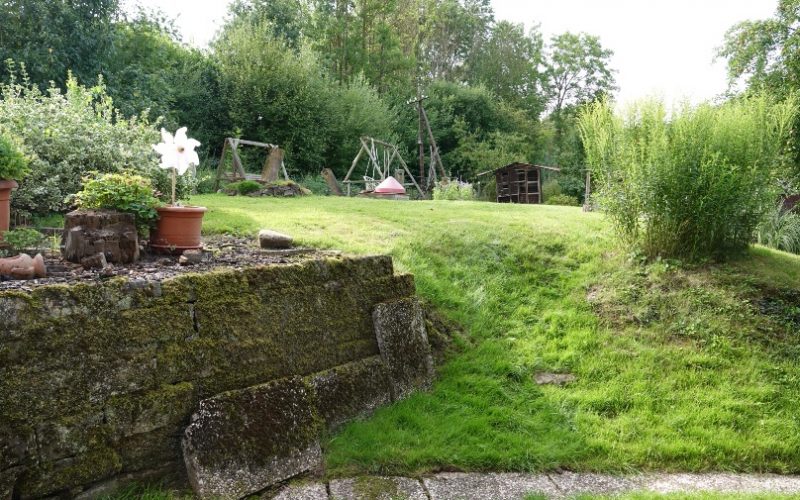 Eine massive Garage sowie weitere Stellplätze stehen zur Verfügung. Der Garten ist liebevoll angelegt. Die Zuwegung und die Steintreppe, die auf die grüne Rückseite des Grundstücks führen, bedürfen einer gründlichen Überarbeitung.